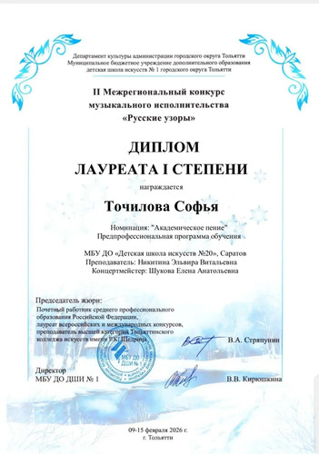 - Точилову Софью - Лауреат 1 степени,