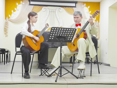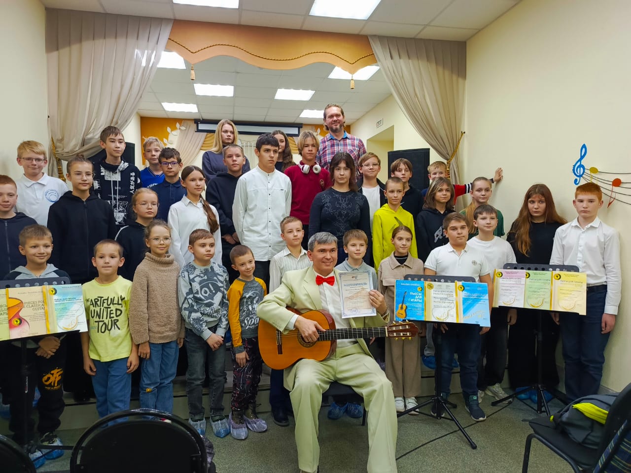 25.10 состоялась встреча и концерт с гитаристом, композитором и преподавателем МБУДО "Чебоксарской ДШИ №4" Чувашская Республика Михаилом Магнитским. В мастер классе приняла участие учащаяся 6 класса Тимохина Карина, преподаватель Мажникова Ольга Александровна. | |