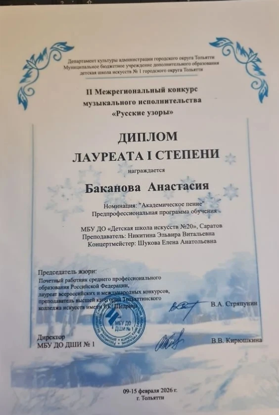 - Баканова Анастасия - Лауреат 1 степени,