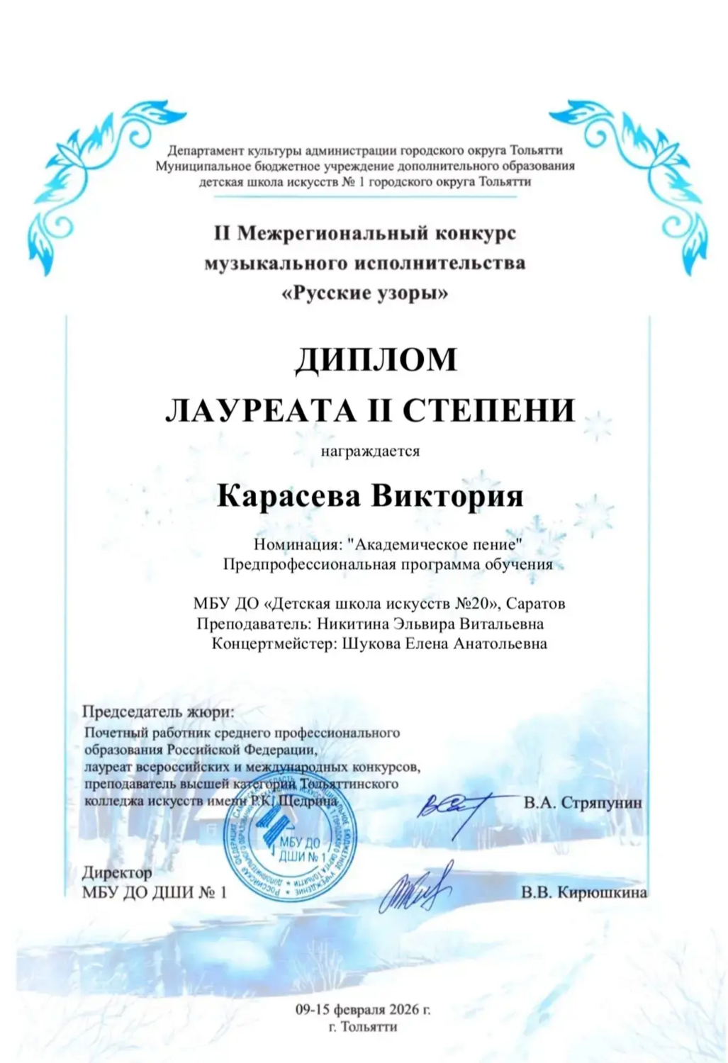 Поздравляем победителей II Межрегионального конкурса музыкального исполнительства "Русские узоры" г. Тольятти